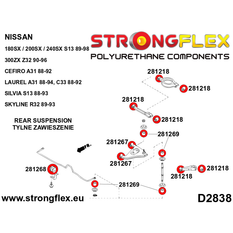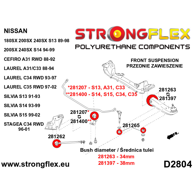Az első lengőkarnak két különböző szilentje van: Ø34mm (281263) és Ø38mm (281397).