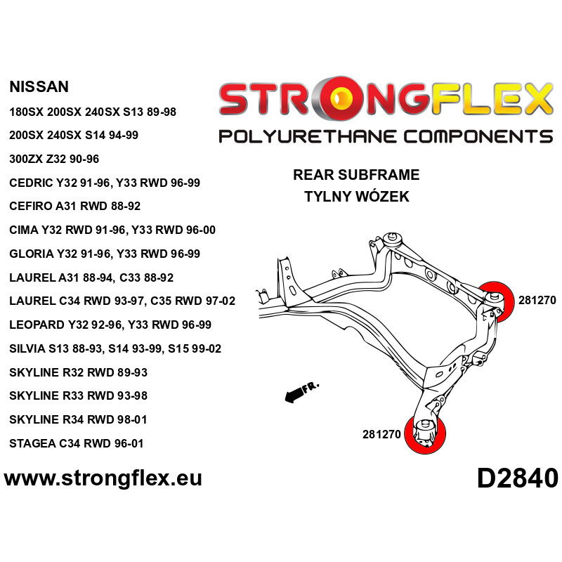 Az első lengőkarnak két különböző szilentje van: Ø34mm (281263) és Ø38mm (281397).