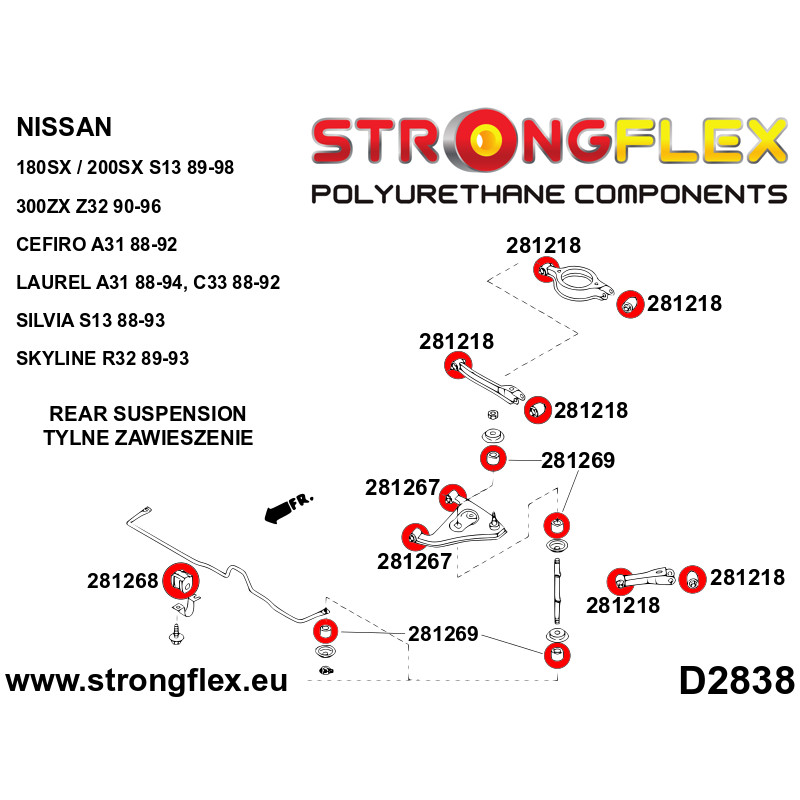 A Motorsport, Drift stb. célú gyakori módosítások miatt az eredeti hátsó forgóváz párnák (gyári szám: 55475-60U00, 55451-33P01) nem használhatók. Az eredeti alátéthez vásárolhat a hüvelyünkhöz illő cserealátétet. A "Bőlcső szilent alátét" mezőben válassza ki a szükséges alátétek számát (0 db/2 db/4 db).